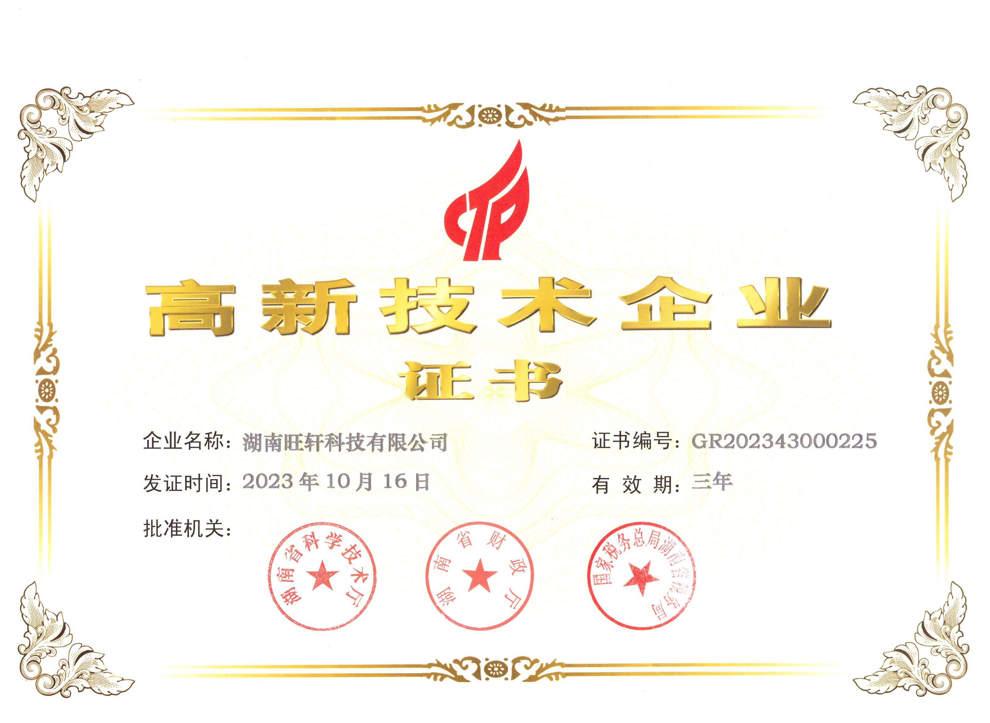 高新技術(shù)企業(yè)證書